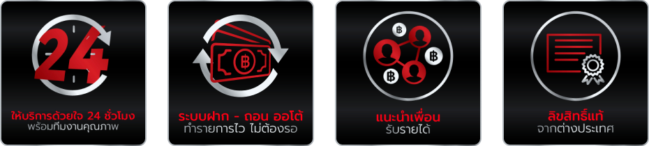 ตอบ : - ระบบฝาก-ถอนอัตโนมัติรวดเร็ว - รองรับการเล่นผ่านมือถือทุกระบบ - มีโปรโมชั่นและโบนัสมากมาย